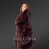 - Women’s authentic fox fur coat with a broad furry collar.