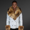 The version of the Authentic white leather item smartly fuses leather with fur. Lots of creative ideas and innovative thoughts went in designing the product line. You can wear the innovatively designed leather jacket as a proper dress. The product range is completely designed by hands and is one of the latest examples of authentic Italian designing.