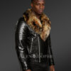 Black Biker Jacket with Raccoon Lapel – Be a Trendsetter