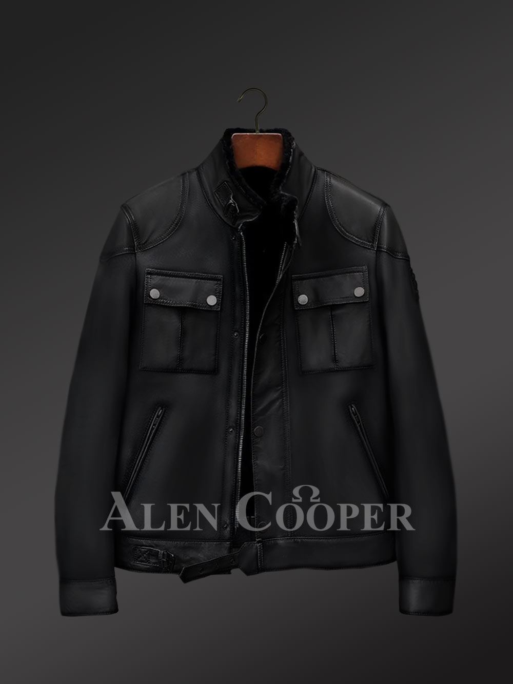 Genuine pelts of shearling used in designing this jacket range