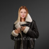 Black Nappa Sheepskin Shearling Jacket for Women
