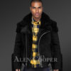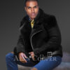Black Suede Finish Biker Shearling Jacket For Men
