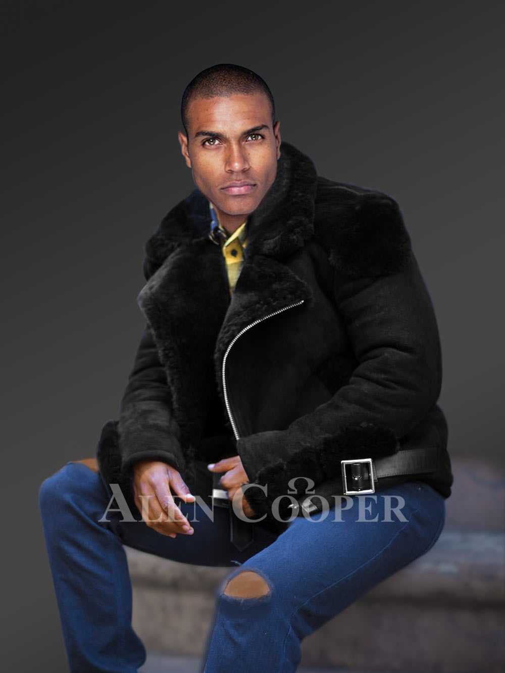 One can never go wrong with a biker jacket especially when it is black. Alen Cooper’s Black Shearling Jacket for Men is something you would want to yearn for. It is a must-have to your wardrobe collection. Ideal for climatic conditions where the temperature is below freezing point, the jacket has a huge fashion demand.