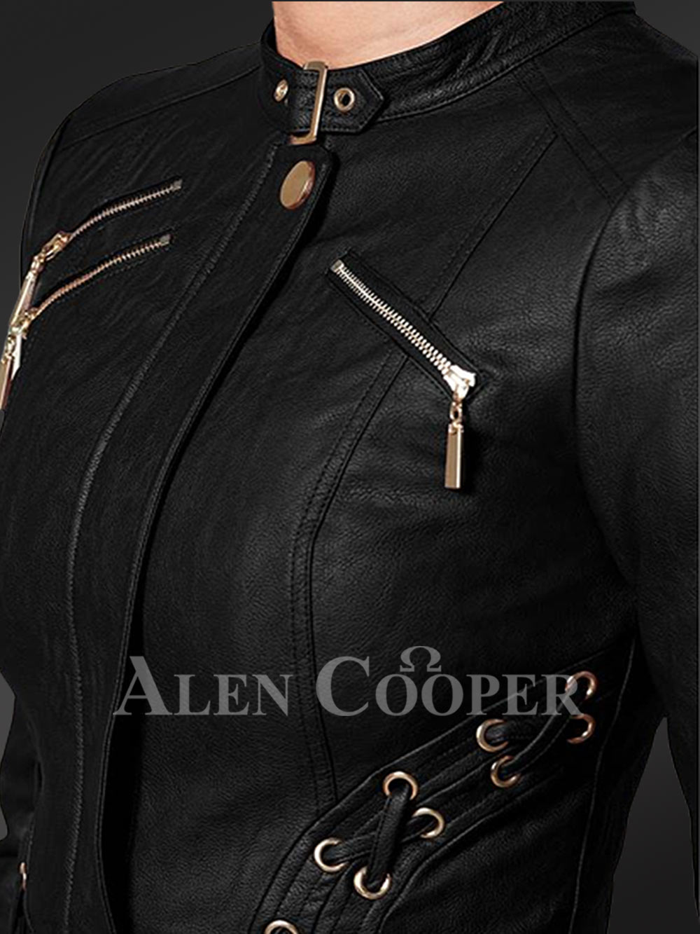 Alen Cooper presents one of its classic designs under the winter wear category – the Crop Leather Motorcycle Jacket for women. With its adaptive qualities, it is one such jacket that will thrive on both cold winter nights and sunny winter days. Its design and structure are ideally suited for all ladies of all body types and will rather enhance the feminine appeal. The product’s design is reminiscent of a motorcycle jacket.