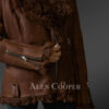 Designed with immense creativity and innovation, you can easily wear the jacket as a proper dress. The inner woolen layer of the fabric is flipped and overturned to define the collar, the lapel, the waistline, and the cuffs at the wrist. The dark brown fur detailing over the Nappa finish Sheepskin Shearling Jacket makes way for a powerful contrast. It looks impeccable and has a separate class of its own.