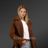 The chic product line is designed from genuine pelts of shearling. The texture of the product is soft and supple. The plush sheepskin shearling jacket for women is ideal for harsh or bitter winters with temperatures below freezing point. Designed with utmost innovation and creativity, the jacket can be worn as a proper dress, with any bottoms. The Brown Sheepskin Shearling Jacket radiates ultimate sophistication and charm. It rightly belongs to a completely different class of its own. The sheepskin shearling jacket for women ensures a perfect fit for everyone, regardless of your height or figure.