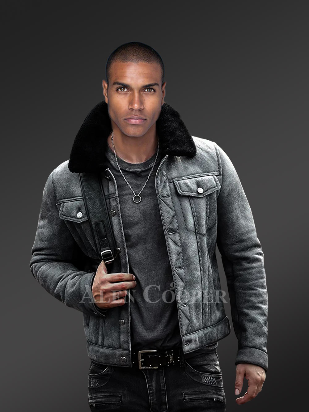 Denim Style Authentic Shearling Jacket for Men