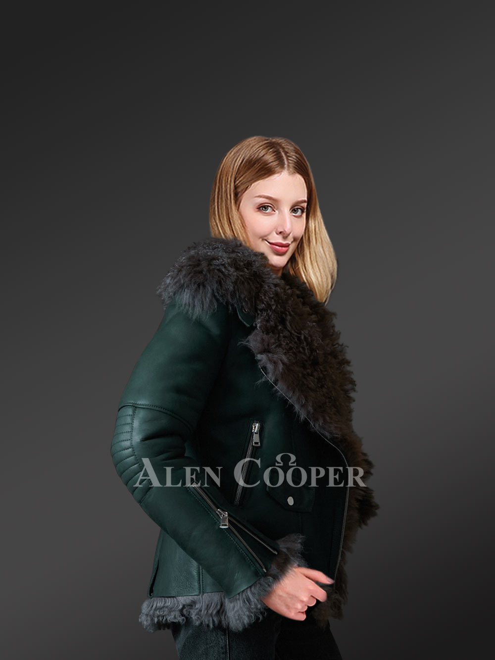 Emerald Color Toscana Shearling Jacket to Redefine Regal Taste of Women