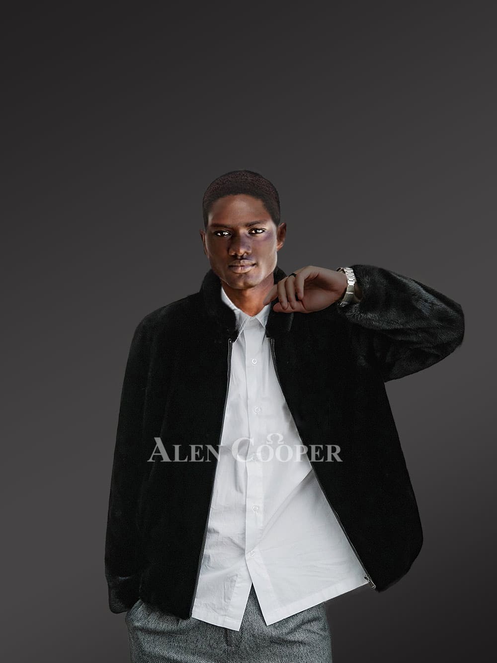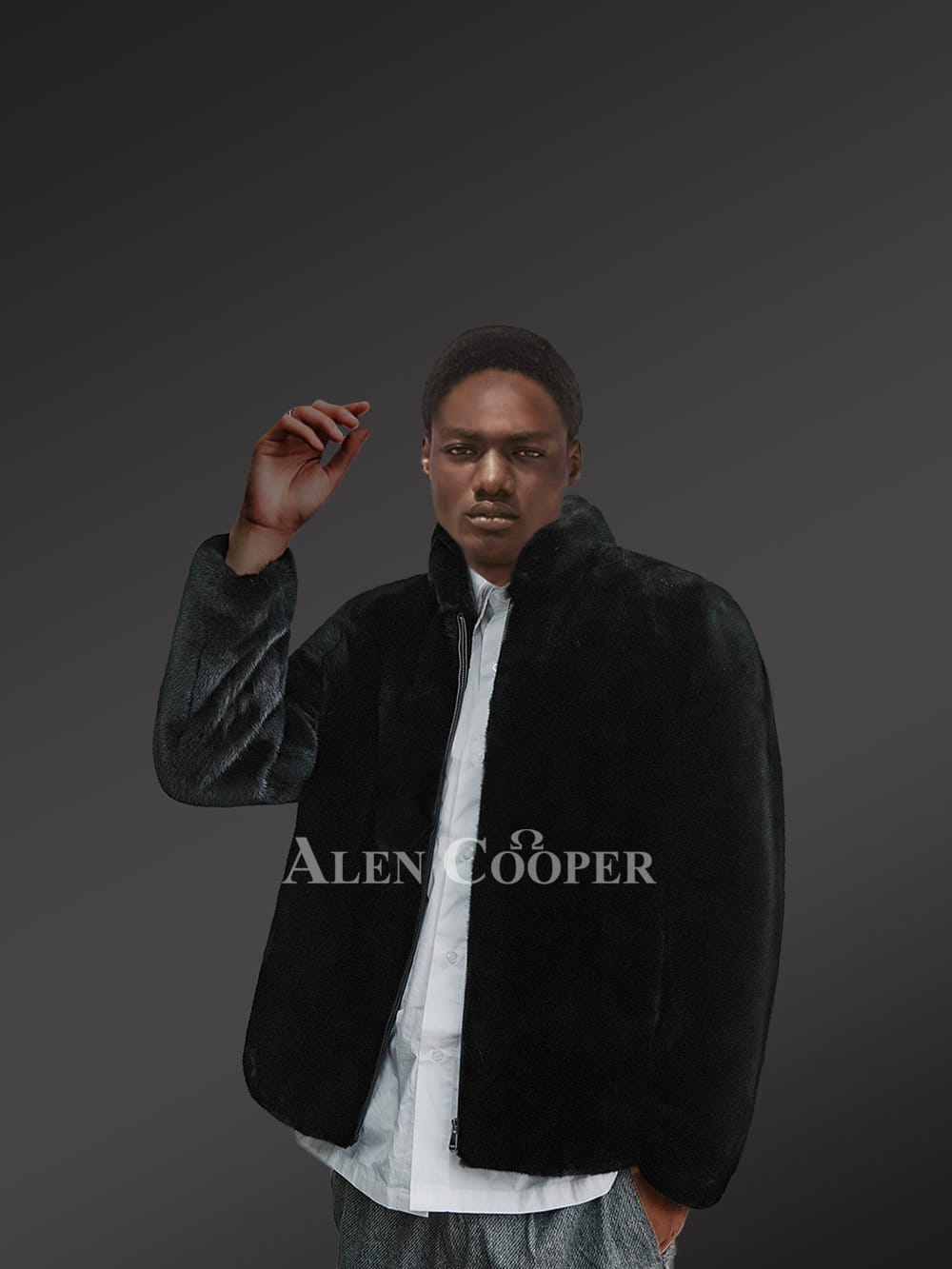 Exotic Black Full Skin Mink Fur Coat for Men’s