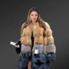 With baggy sleeves and modish collar, this luxurious coat offers excellent protection from the cold wind. Thick bands of fox fur stylize the sleeves in tiered pattern similar to the front and back sides of this outfit. The sleeves cover the entire arm along with the palms. Thus, one receives all-round protection in the winter. Also, this outfit of natural fur can keep one comfortable due to being a breathable fabric.