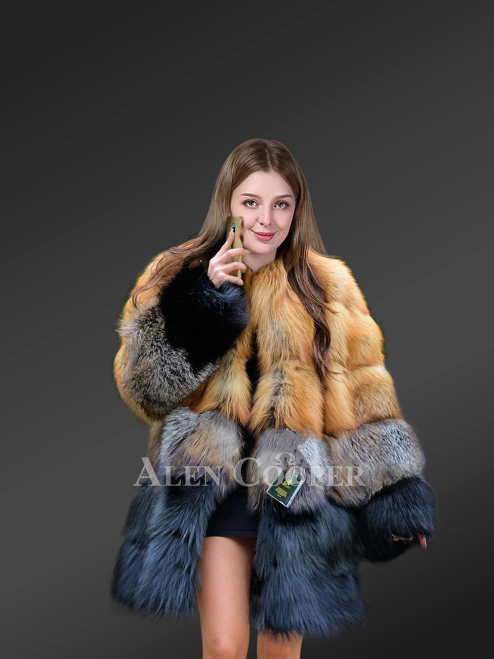 Multicolored Coat of Fox Fur with Impressive Features