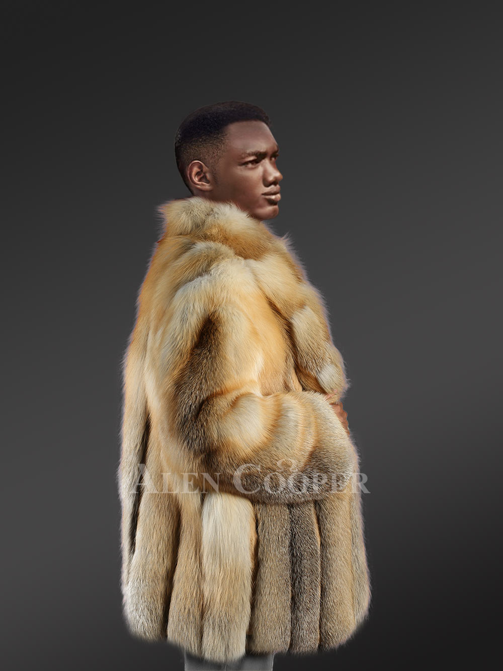 Luxurious Mens Golden Fox Fur Coat with Stunning Features