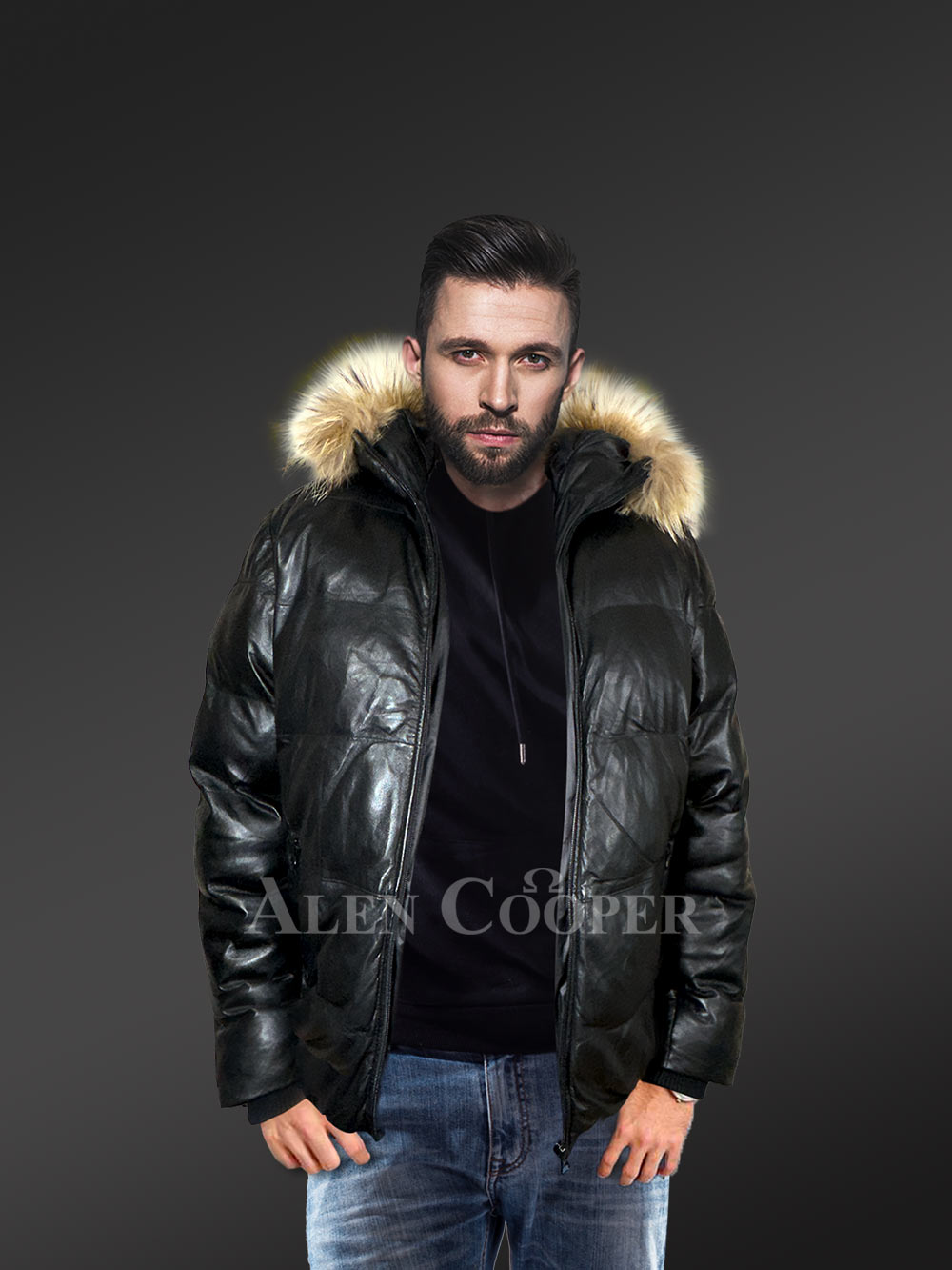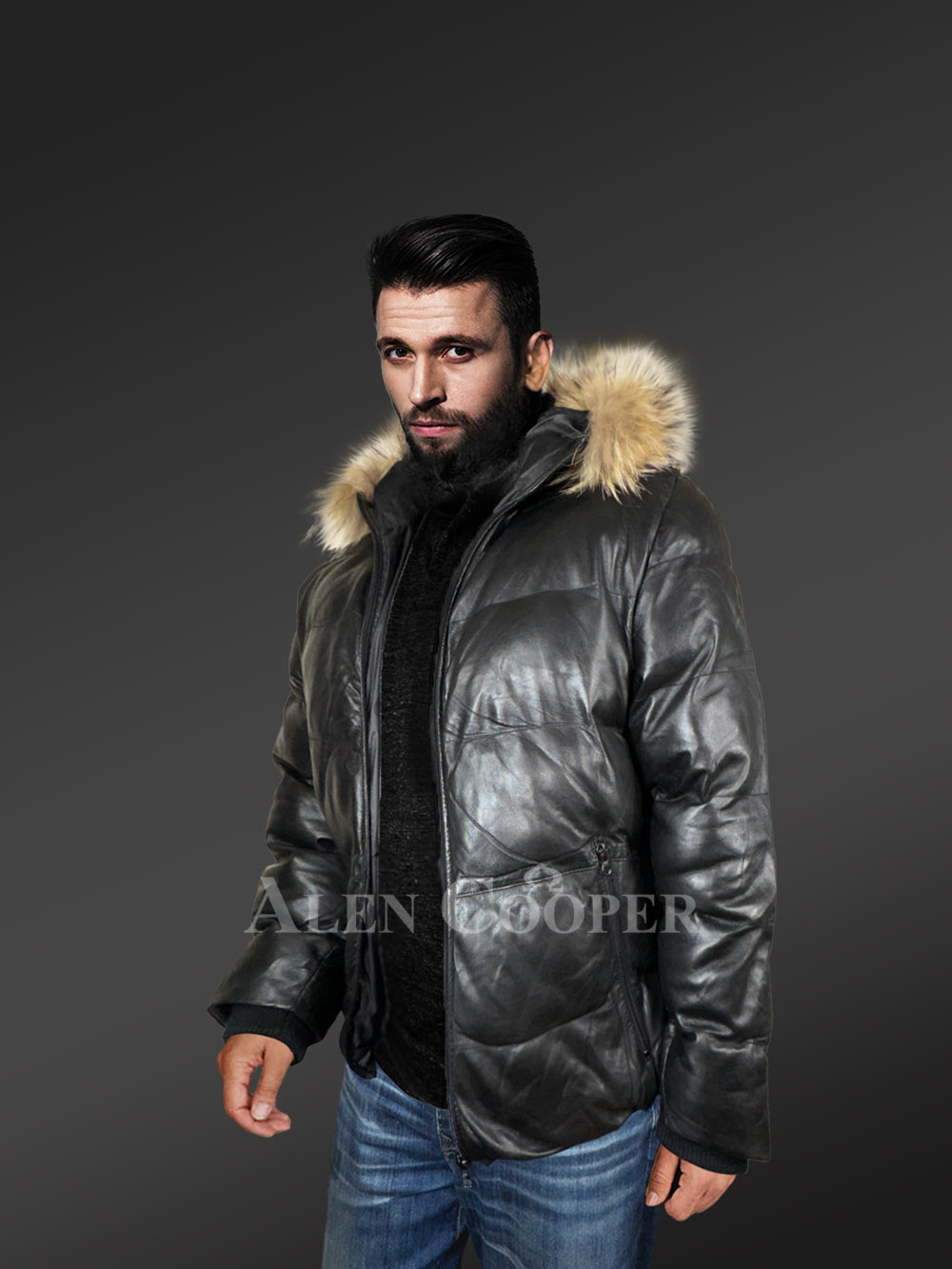Acquire Alen Cooper’s down jackets to transform the dreary winter season into ecstatic bliss! Stay warm and joyful when the luxurious leather down bombers take on the dressing dictate. In line with this, presenting the Goose Down Puffer Men Bomber jacket – an ingenious design that marks glory to winter luxuries.