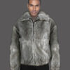 This trendsetting hare fur men bomber jacket can elevate one’s appearance in an instant. As can be seen, it features the original hare fur’s shade and looks elegant with a fusion of different grey tones. Also, accents of white highlight its different parts. This unique combination undoubtedly elevates this jacket’s aesthetics.