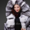 Hooded Silver Fox Fur Long Coat for Women