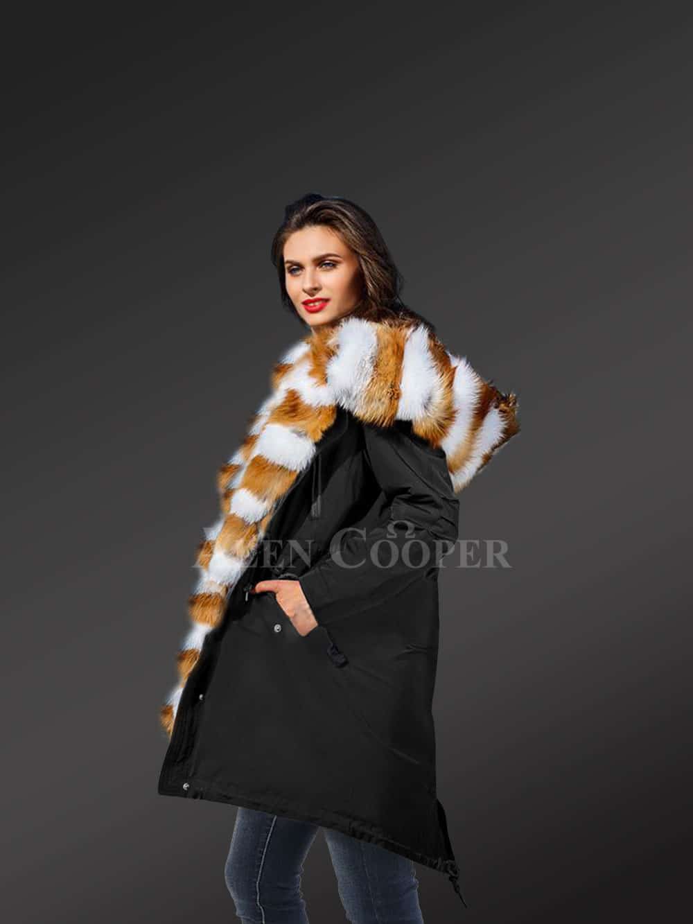 As both the liner and the frontline are detachable, you can easily slip on the inner Fox Fur Parka vest separately as a completely independent dressing unit. The product line is completely hand-stitched by highly skilled and experienced professionals. You can wear it to attend different types of social gatherings. At the time of placing a purchase order, you can custom choose both the color and the variety of the fur black parka for the inner vest. A wide and stunning range of options is provided to you for the purpose although the fur along the rim of the frontline and the hood stays static.