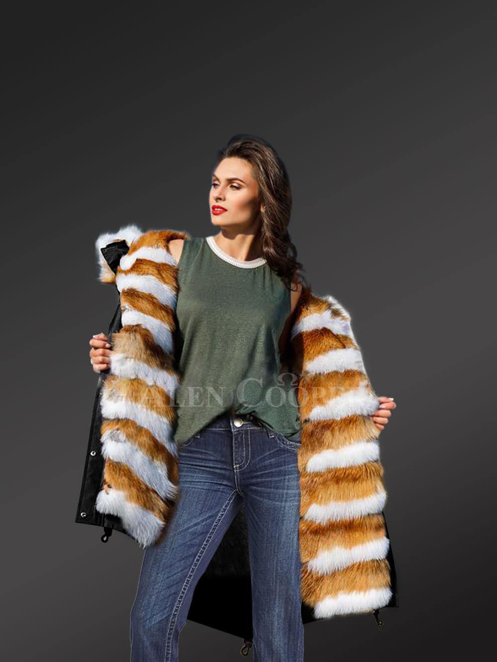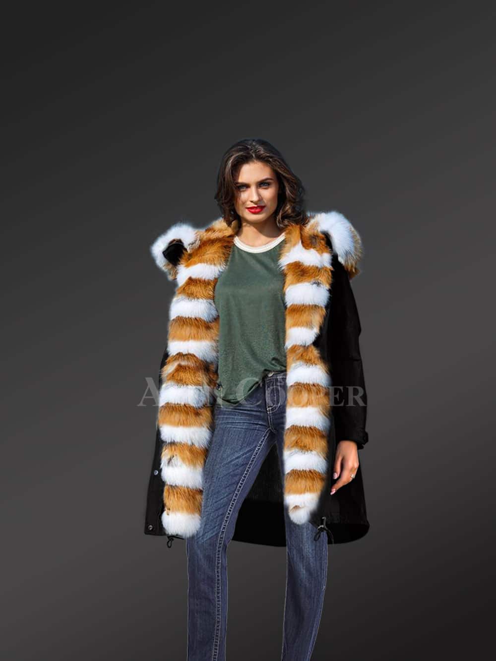 Arctic fox fur is renowned for being soft and supple. It is ideal in harsh chilly climatic conditions where the temperature drops as low as minus 40 degrees. The fur is also significantly lightweight and long-lasting. A neatly deigned range of fur black parka convertibles for females made from Red Arctic fox fur is redefining fashion trends. The product line is highly innovative and you can wear the item as a proper dress. The patches of fur in contrasting colors running along the trim of the hood and the frontline exhibit a great style making the parka as charming and attractive as you can imagine. You can wear it in a number of ways depending on your mood.