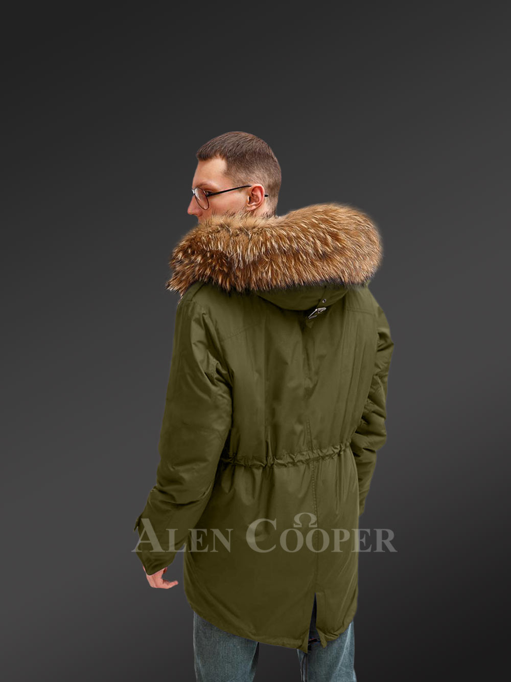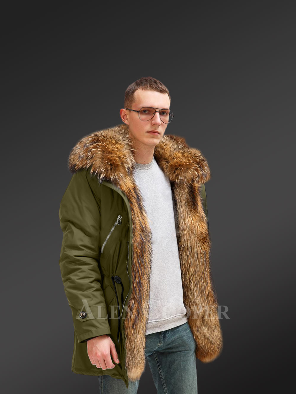 Improve Your Identity with Finn Raccoon Fur Hybrid Green Parka Convertibles for Men with Rabbit Liner
