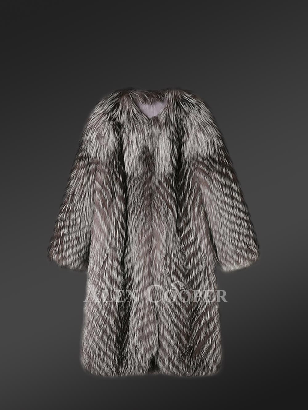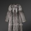 This luscious coat is made from superior Silver fox fur and features a dense finish with front open clip lock hooks. The wispy fur lapel adds to the charm of the winter coat. fur It has a zig-zag fur finish in alternating hues through the whole body for an elongated look. The premium quality Silver fox outerwear is a classy yet trending piece in the fashion industry. The elegance of the knee-length coat gives it a timeless look.