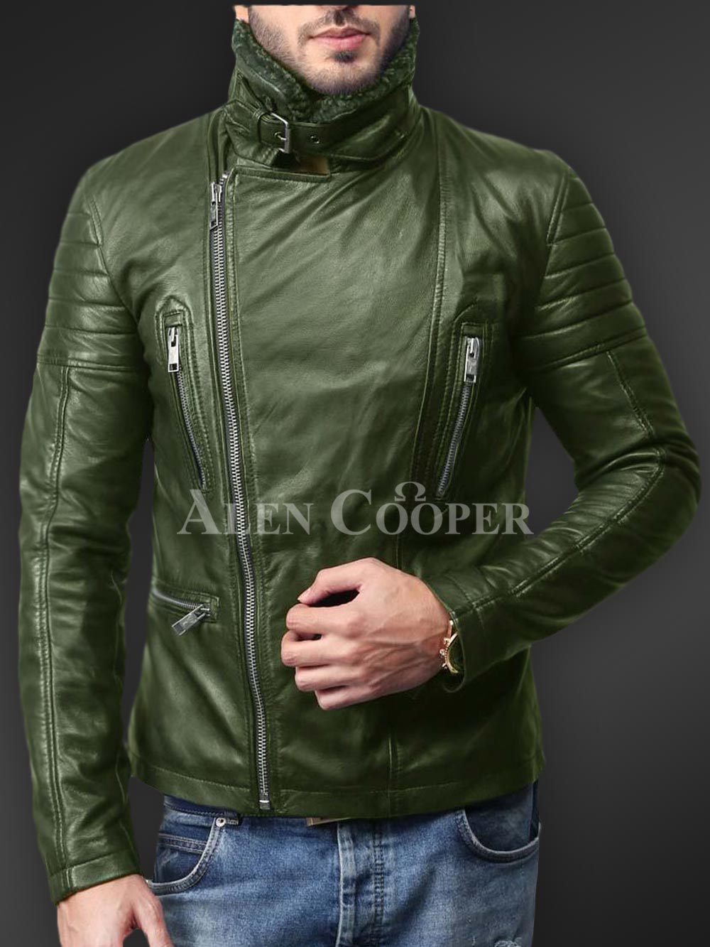 Lambskin Leather Biker Jacket for Men with Many Fascinating Features
