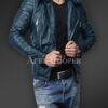 This trendy lambskin leather biker jacket for men can instantly glamorize the appearance of any man. Its aesthetic features will readily attract anybody. At the same time, lambskin leather allows for adequate air circulation and can keep one comfortable for any length of time. One can also enjoy the smooth texture of lambskin along with the soft touch of satin lining after wearing this jacket.