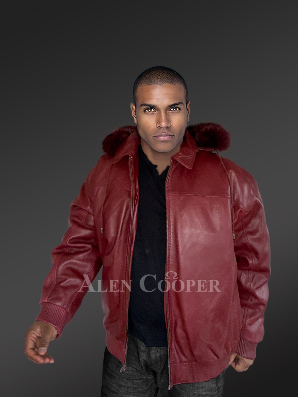 This sophisticated leather bomber jacket with detachable hood offers amazing comfort and restfulness through its high-quality Nappa leather. This elegant outerwear for men comes in a resplendent wine shade that can glow up any party ambiance. Alen Cooper makes sure this classy jacket is meticulously crafted with all the practical features of thermal wear as well as carrying fascinating looks. It is available in all different sizes and can be stylishly paired up with both light and dark-shaded trousers.