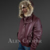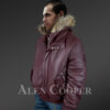 This trendy bomber leather jacket with fur embellishing the border of the hood can turn anyone into the centre of attention. To sport a fashionable look, it can be worn to all types of events and trips in winter. Furthermore, the semi-aniline finish gives a glossy finish to this authentic lamb leather.