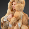 This Luxury Gold Fox Fur Jacket for Women is the outfit with whole skins of Golden fox fur from Scandinavian eco fur farms. The natural gold and white combination is lucrative and alluring enough to draw the attention of the opposite genders. With a unique fashion and a fantastic design, this knee-length jacket is a must-have for the women’s winter wardrobe collection.