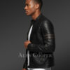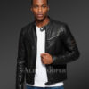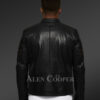 The leather motorcycle men jacket exhibits all key characteristic of high-quality leather clothing. For instance, band collar neck, a reminiscent of the stand collar leaves immense majesty. It is aided by popper closure with a dual snap-button end. Further, zip adornment along cuffs notably lends a classy stance.