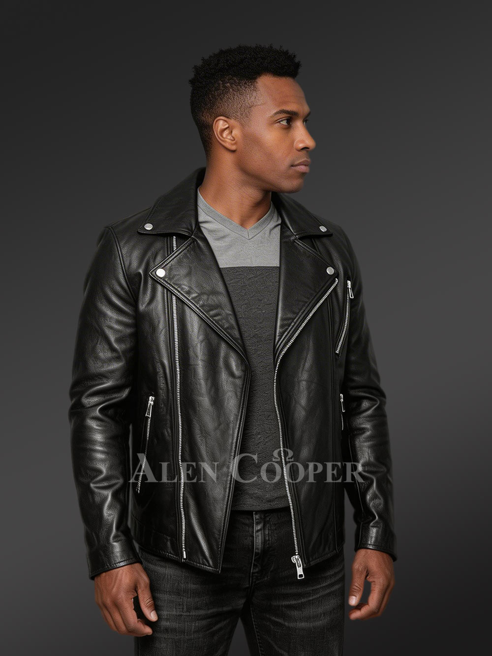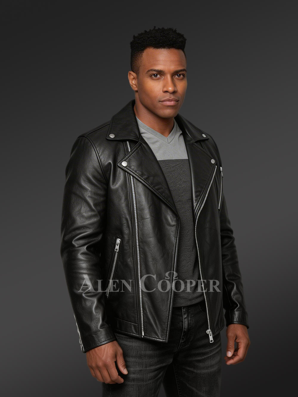 Alen Cooper’s premium winter collections epitome the most luxurious outerwear for men. Opulence is a strict priority without compromising on other parameters. Likewise 100% top-notch quality is a promise, and as a result, excellence points toward utter comfort label. One such examples is the Biker Leather Jacket for Men by Alen Cooper which is seasoned to score the aforesaid.