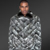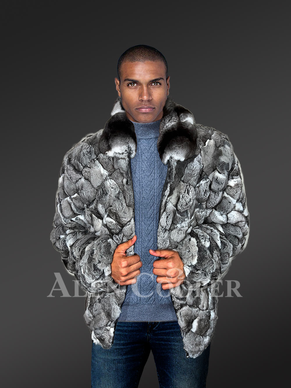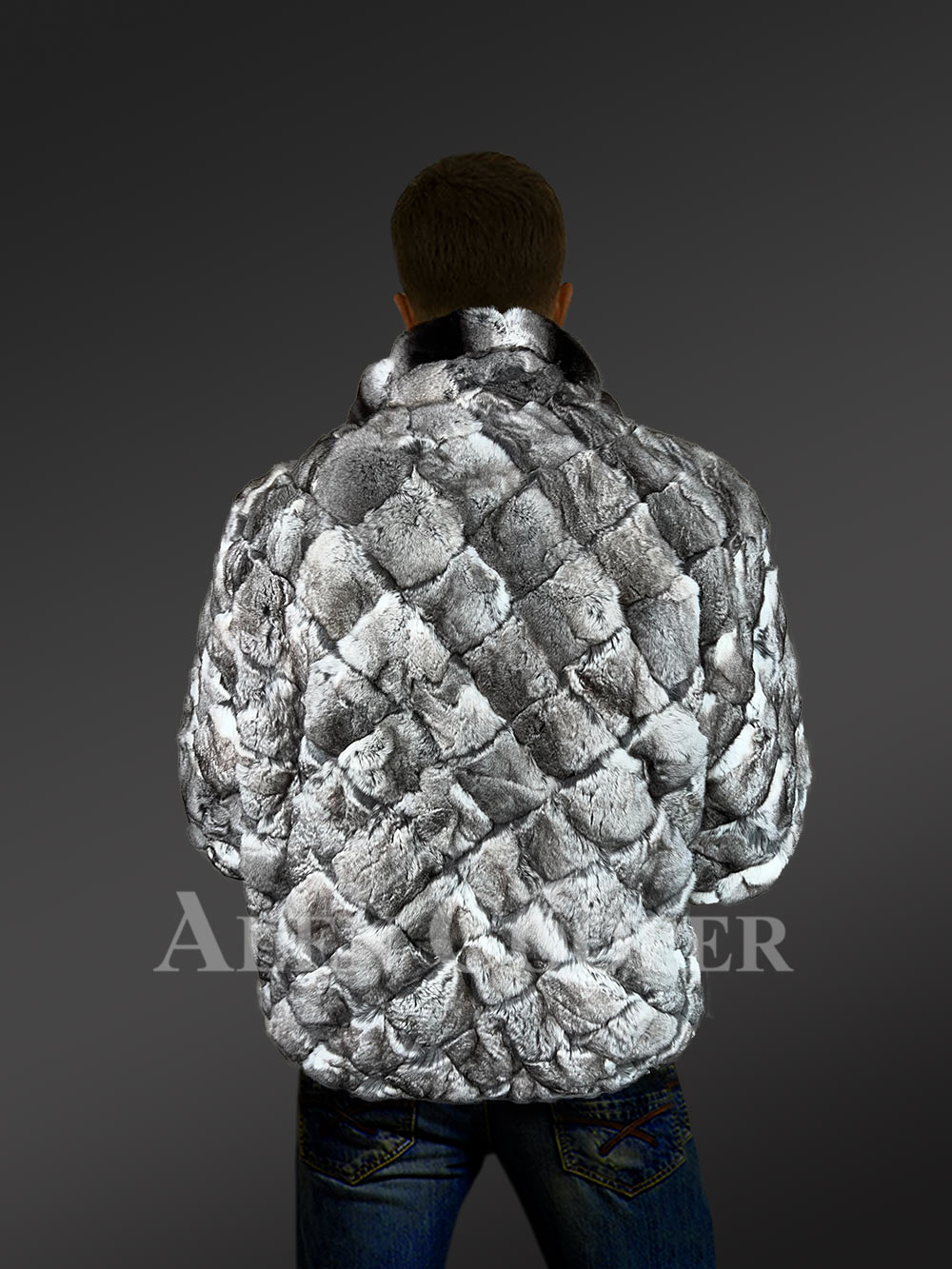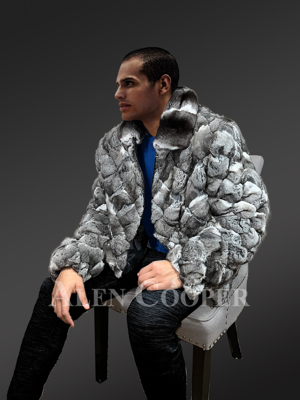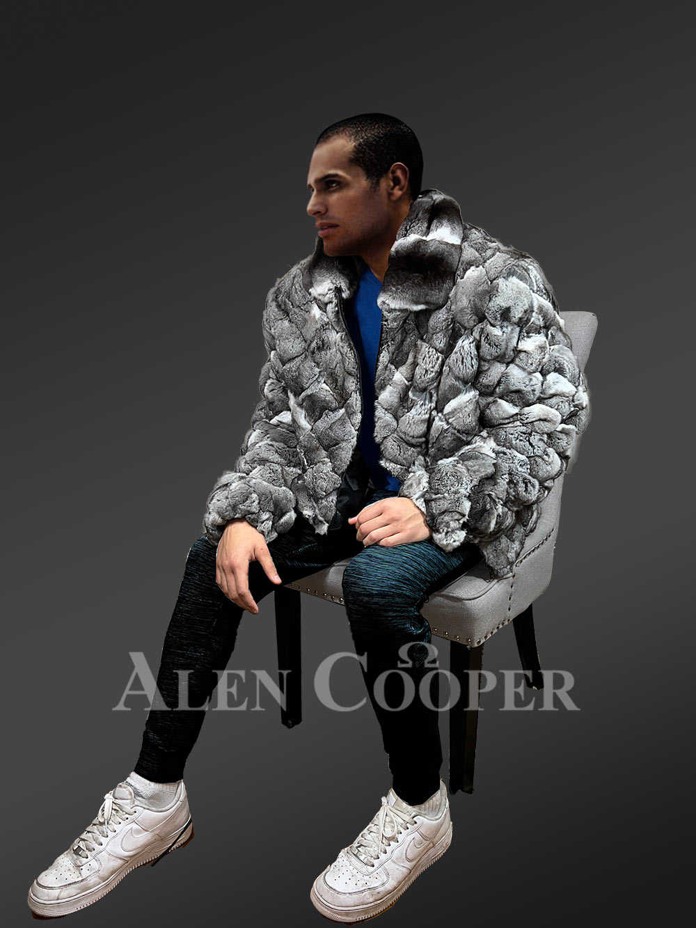 This fashionable men chinchilla fur jacket looks unique owing to the stitched patterns in diamond shapes. The dense chinchilla fur can keep one warm and comfortable even on the coldest days of winter. At the same time, this is a lightweight and breathable winterwear. One may keep it on for hours with no feeling of heaviness. There is no need to sacrifice style for comfort or vice versa after wearing this jacket.