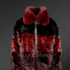 • Luxuriant bomber jacket of mink fur looks spectacular in a vibrant color combination of black, red and wine shades