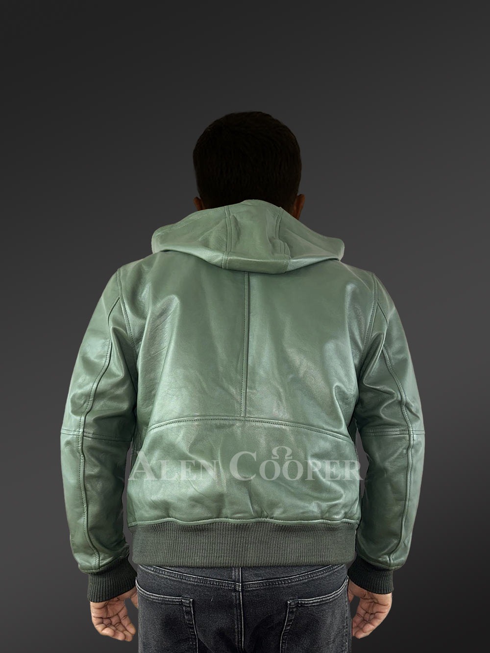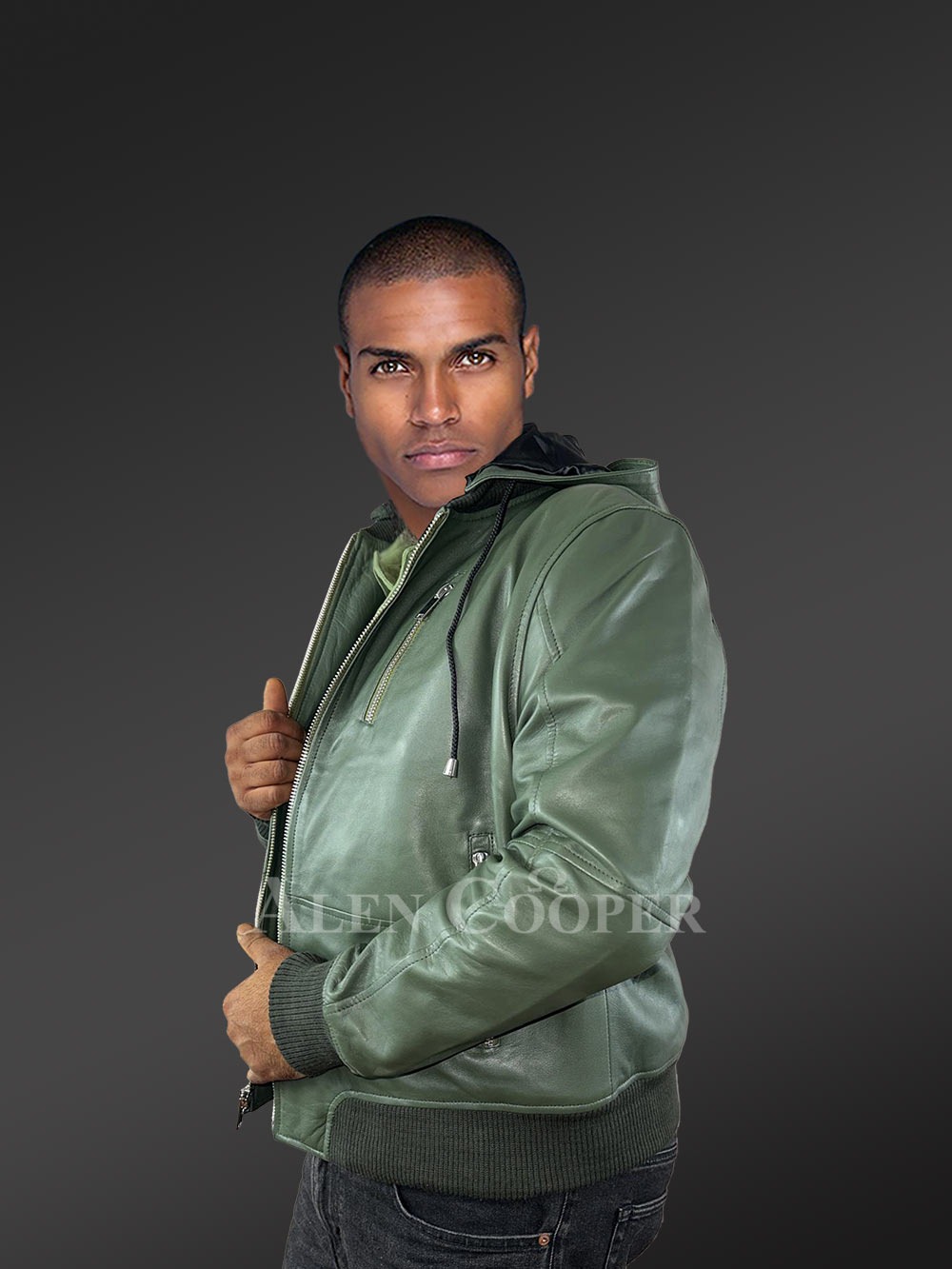 Be the first to review “Men’s Attached Hood Lambskin Bomber in Green”