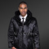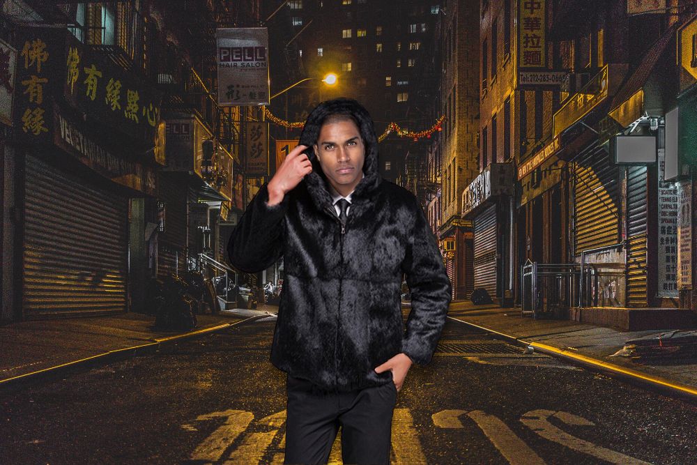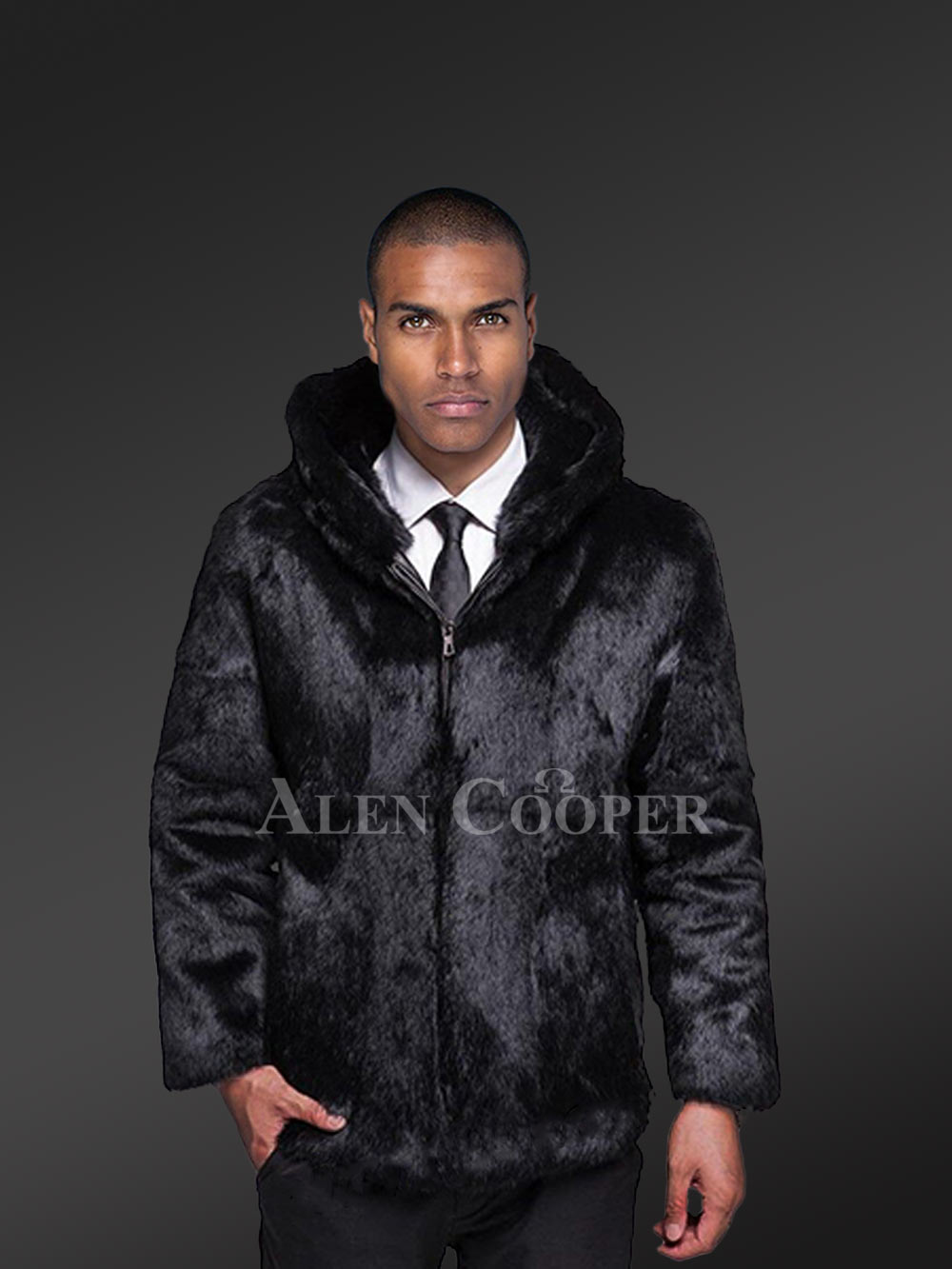 Men’s Authentic Rabbit Fur Coat in Black with Hood