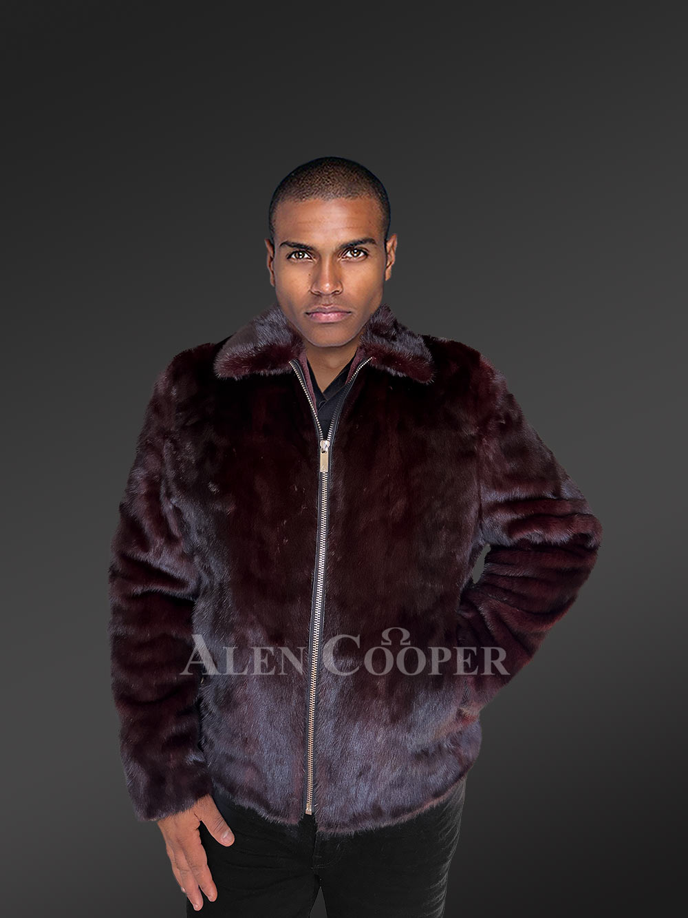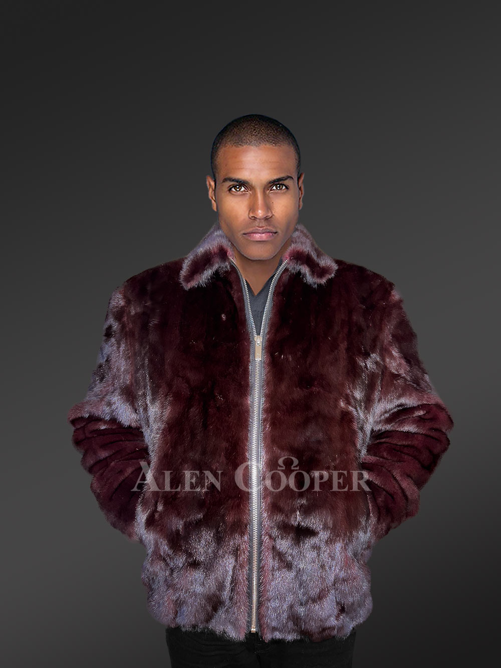 Exclusive Features of Posh Mens Mink Bomber in Burgundy