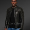 Classy Coal-Black Collarless Real Leather Sturdy Winter Jacket for Men