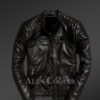 This Classy Coal-Black Collarless Real Leather assures a perfect fit for everyone, unlike the easily accessible regular variants, regardless of height or body type. The collarless neckline has a snap button for fastening. Apart from this collarless feature, the quilted shoulder and the upper portion of the sleeve are the special features that make this outfit truly iconic. The flawless finish and perfect hemlines are appreciable in this winter wear.