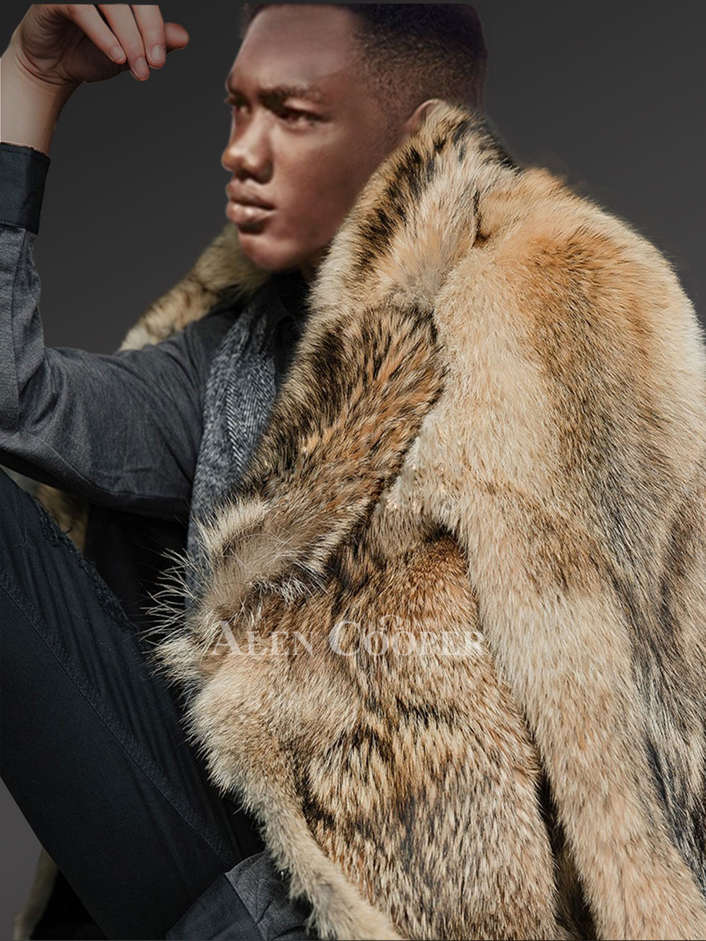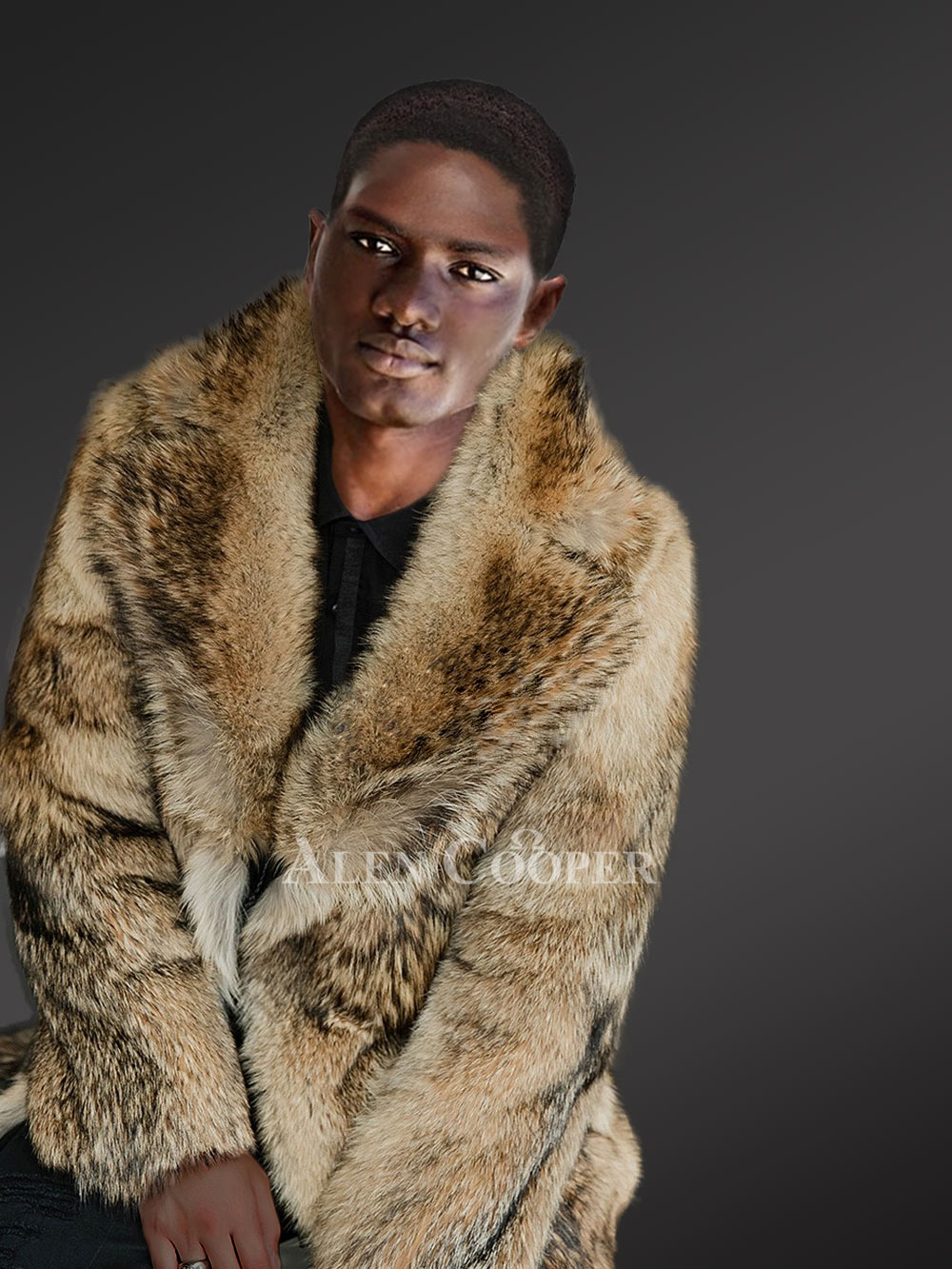 Exquisite Mens Jacket of Coyote Fur with Impressive Features