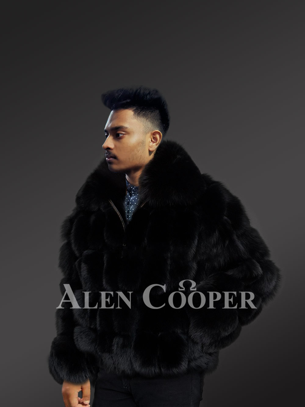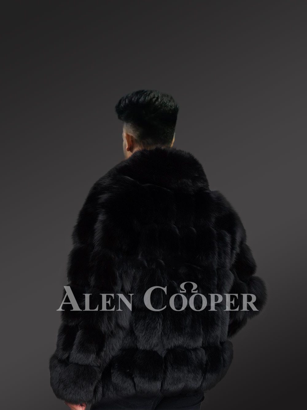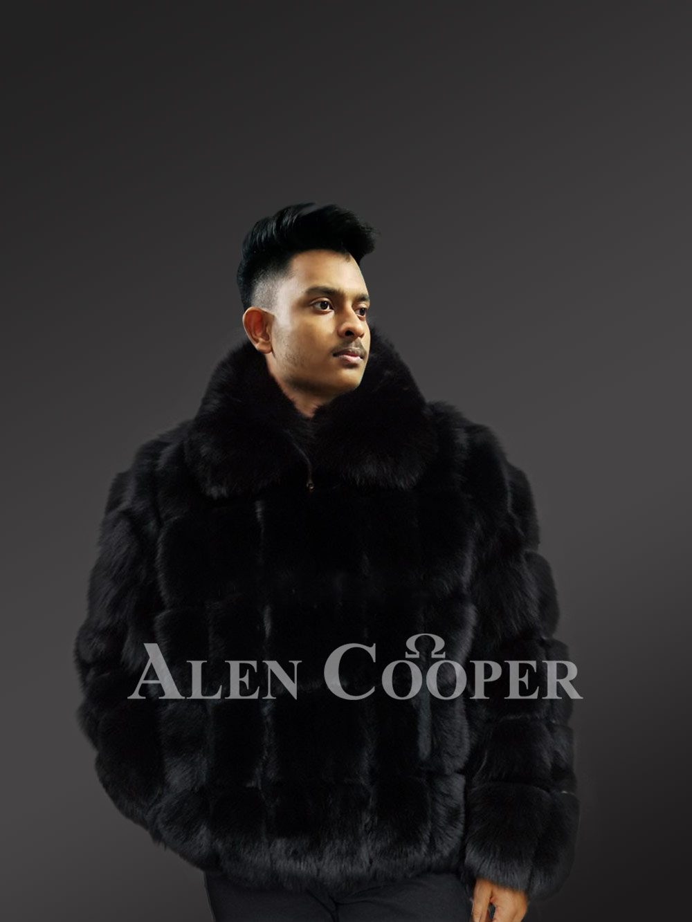 Luxurious Mens Fox Fur Coat in Black with Marvelous Features