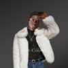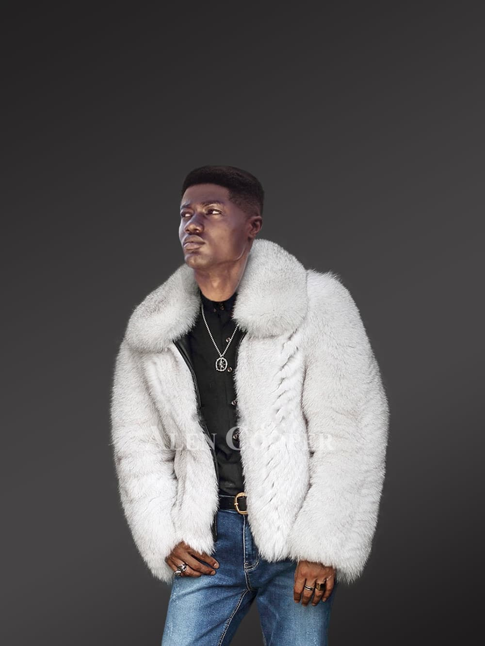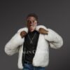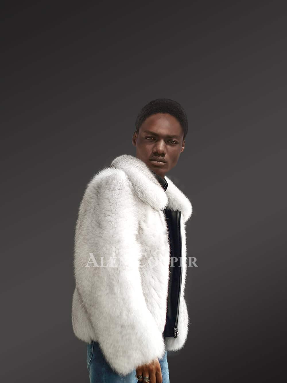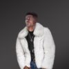This classy mens fox fur bomber jacket will certainly be a valued addition to one’s wardrobe. It looks exquisite and feels markedly smooth to the touch due to being designed using finest quality pelts of Arctic fox. It offers incredible warmth to the wearer due to being handcrafted using full pelts. Also, this pristine white jacket creates an elegant pair with the bottom-wear and top-wear of any color.
