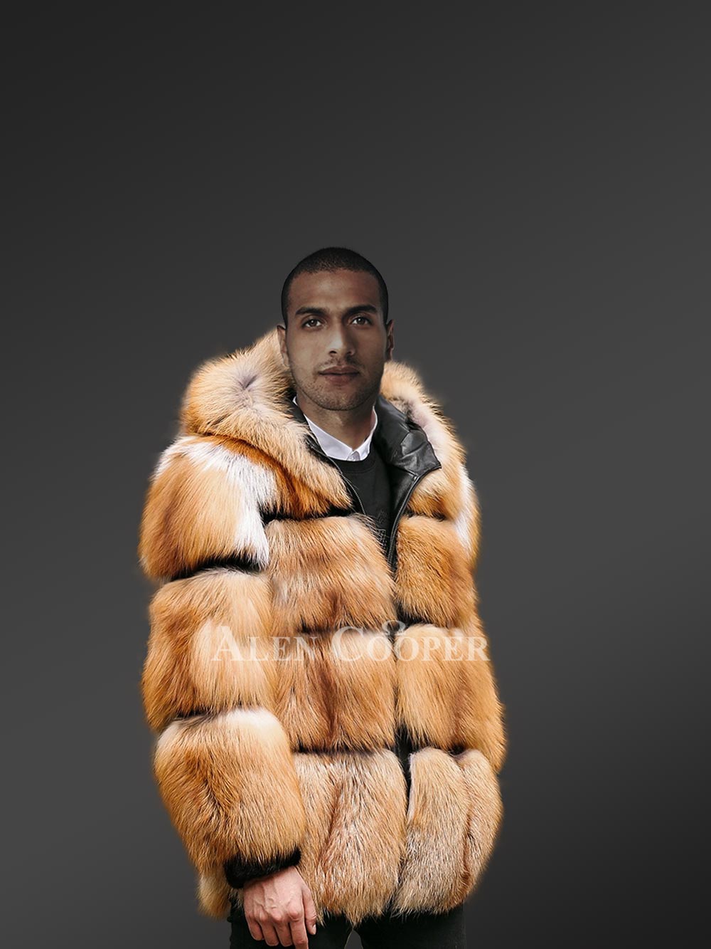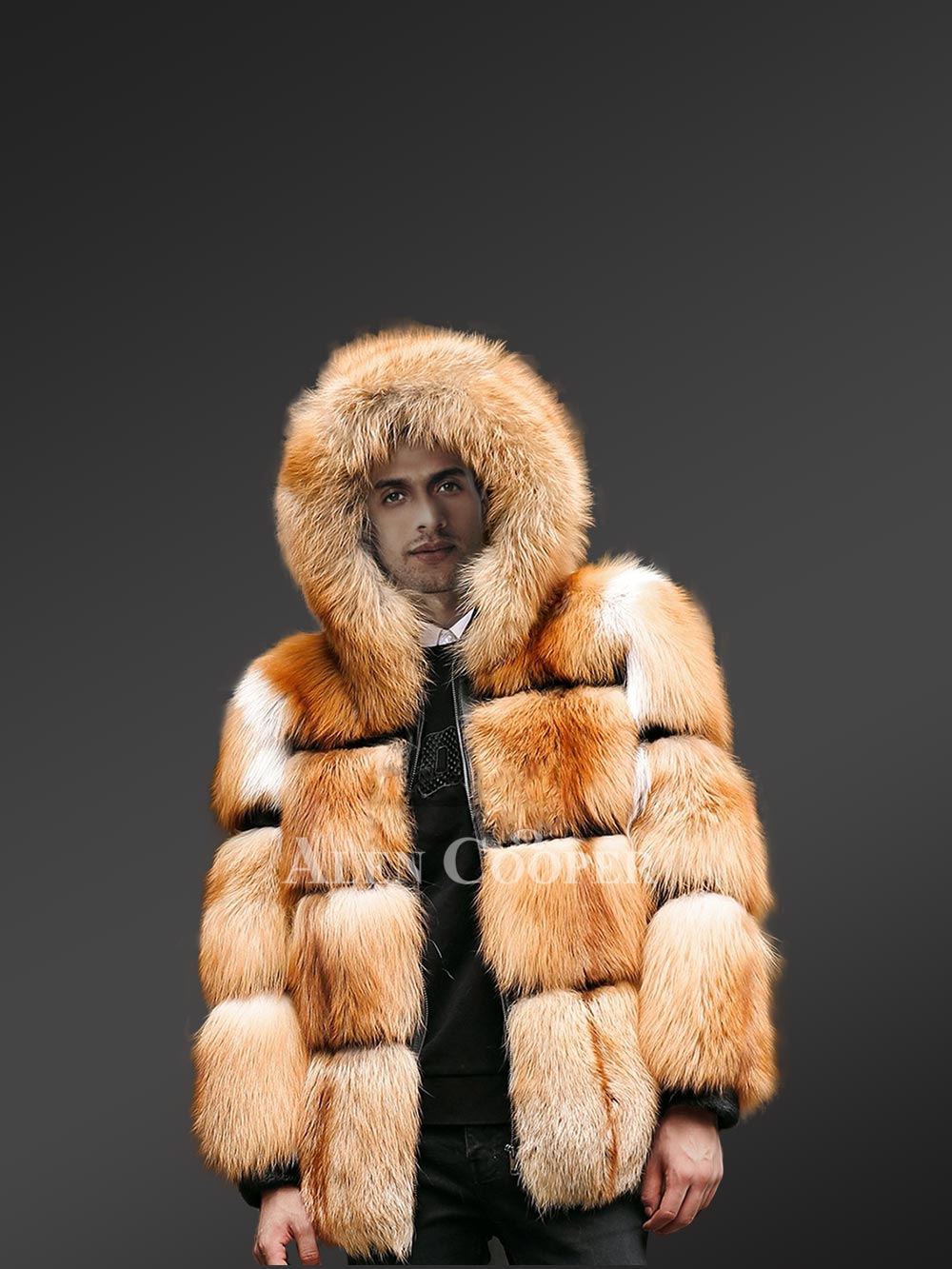 Mens Hooded Jacket of Fox Fur for Comfort & Style