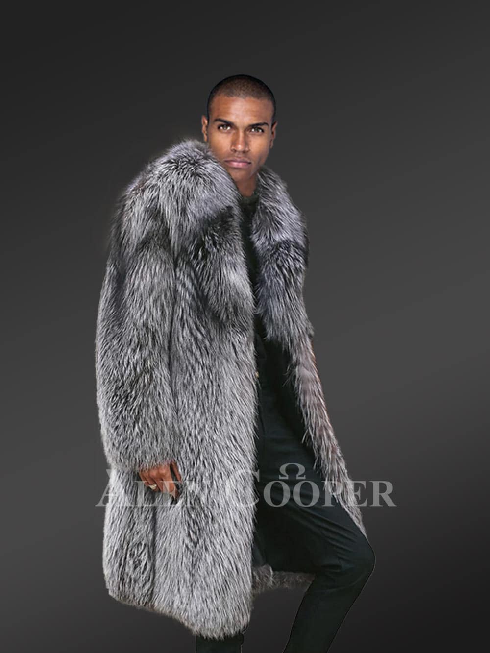 Without a doubt, this long coat looks classy in natural shades of Silver fox fur. It can be paired with different types of men’s trousers depending upon the occasion. For casual affairs, one may wear it over a pair of jeans, chinos, joggers etc. It elegantly pairs with dress pants of any shade for the semi-formal meetings. For special occasions or partying, one may wear it over wool trousers or leather pants.