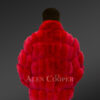 This vibrant red color jacket dyed from blue fox fur is an absolute choice for winter-time festivities. The radiant red shade illuminates the party ambiance as well as heightens one’s appearance. It has been designed from sectioned fox pelts therein presenting a paragraph-style body and sleeves. The tiered pattern of long furry sleeves skillfully keeps the hands warm. This waist-length jacket has elasticized cuffs and hemline as a key feature being a bomber style piece. The elasticated ends shield against chilly winter air from entering the body.