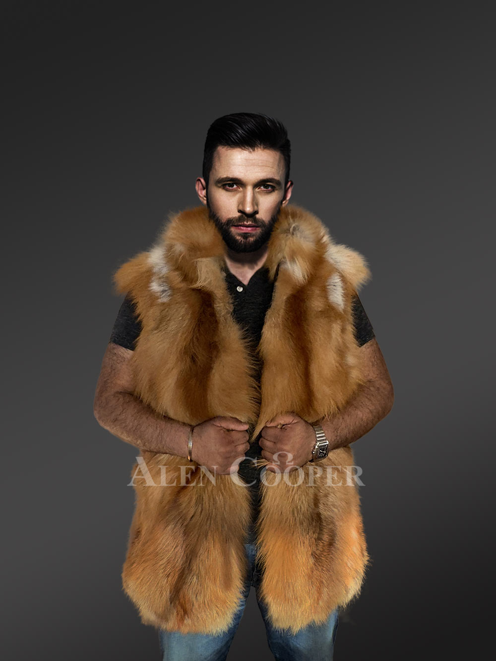 Mens Red Fox Fur Vest – Enjoy Comforting Warmth with Elegance