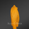 Description: For a simple yet stunning look, you can easily go with this yellow leather jacket. Its texture is soft and smooth; comfortable enough to carry for a long day. It can keep the wearer warm even in the minus temperature. It has long sleeves, easy front zipper closure, zipped pockets on chest and sides as main attributes of this real leather outerwear. its stand collar is also making it more appealing in nature.