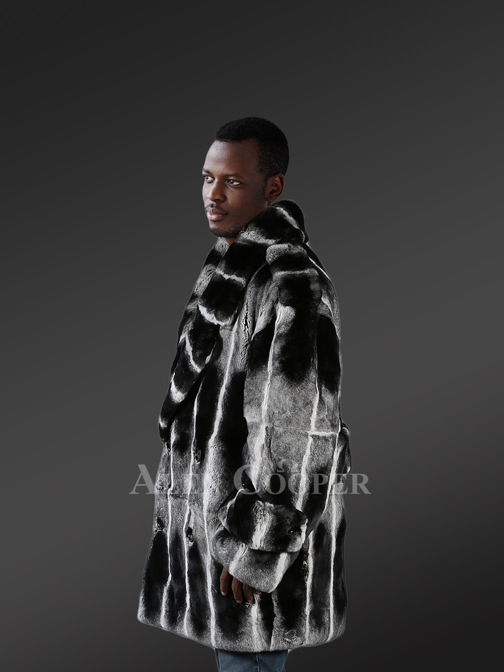 - Posh and trendy pea-coat of Rex rabbit fur dyed to mirror the looks of Chinchilla fur
