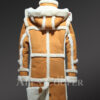 Mens Shearling Long Coat with Detachable Hood and Back Slit