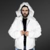 This white jacket can effortlessly make any man look dapper because of its graceful appearance. This coat features a turned-down collar and large hood for absolute protection in winter. The collar offers warmth and comfort to the neck as well as the shoulders owing to its width.