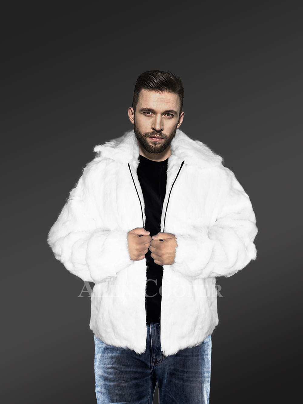 Mens White Coat of Rabbit Fur – Lightweight & Absolute Comfort