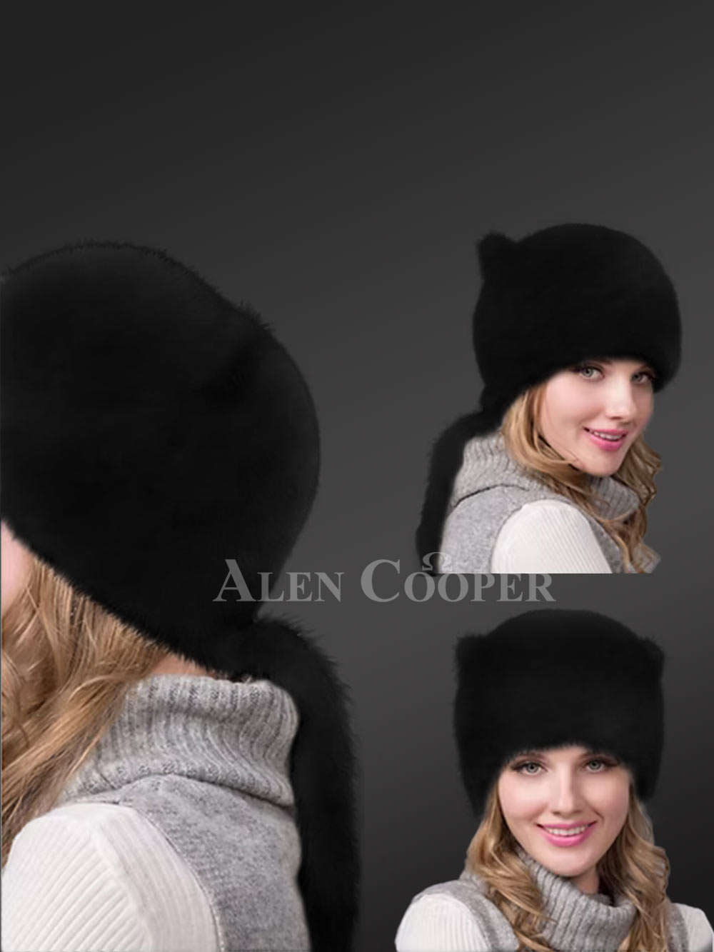 Women’s Beanie Hat of Mink with Tail for a Comforting Wear
